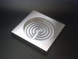 連休のため、材料屋さんが休みだったので、ちょうど加工機が空きました。そこで、早速ipod Shuffleアルミケースに取りかかりました。まずは、トップパネル、ボトムパネルの裏面の加工を行いました。使用した工具の本数は9本、加工時間は40分程度です。左の写真はそれぞれ加工後の様子です。